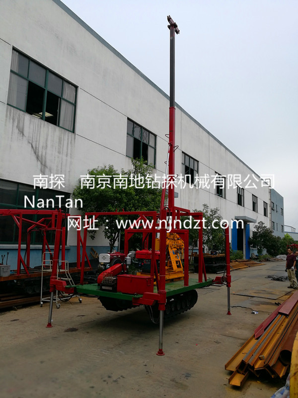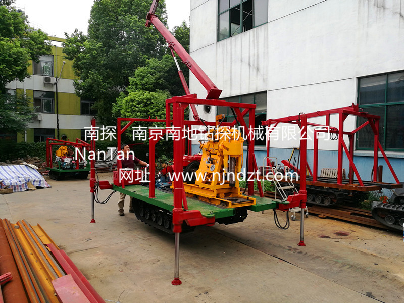 該履帶底盤(pán)承載重量達(dá)4T,可以裝載各種小型鉆機(jī),如:XY-1-1、XY-1、XY-1A、XY-1A(YJ)、XY-1A-4、XY-1A-5、XY-1B、XY-1B-1、XY-1B-2、XY-200、XY-200(YJ)、XY-200B、XY-200B-1、XY-200B-2、GXY-1系列、GXY-2Q、GXY-200B、GYQ-200、GYQ-200A、GK180、GXY-2K、GXY-2C等100-300米鉆機(jī),并可同時(shí)載BW160、BW160A、BW200或BW200A型泥漿泵,具有伸縮式液壓起落鉆塔、行走方便、上下汽車(chē)安全等特點(diǎn),廣泛適用于公路、鐵路、水電、橋梁、壩基等的工程地質(zhì)勘察、地質(zhì)巖芯鉆探、物理勘察、小型灌漿孔、爆破孔、水井孔和空調(diào)孔的鉆進(jìn)。