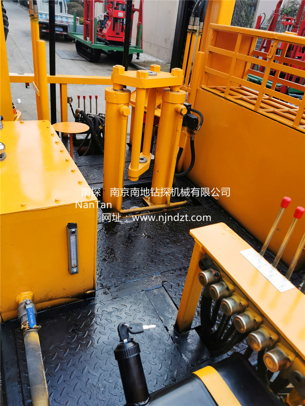 NTLPSY-L8-20T-SG型履帶靜力觸探車由自行走履帶底盤、1臺四缸柴油機、20T液壓靜探機、自動伸縮式升高型上下車液壓支撐腿系統(tǒng)、2組液壓下錨機、控制器、平臺及駕駛機構(gòu)等組成,共同組裝在一個機架上。