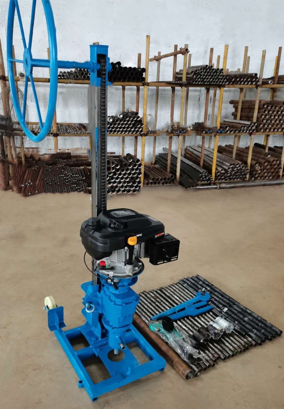 可以2人操作的取芯鉆機!鉆探深度可達20米!采用輕便的汽油機(或柴油機可選)作為動力,分體式輕便實用,帶兩輪搬遷十分便利,帶支架穩(wěn)定可靠,滿足野外車輛無法進入地區(qū)時用;鉆機操作簡單,易學易懂??蓪崿F(xiàn)合金鉆頭、復合片鉆頭、金剛石鉆頭取樣鉆進,也可以實現(xiàn)麻花螺旋鉆進、三葉合金鉆頭、復合片不取芯鉆頭等不取芯鉆孔鉆進的需求。