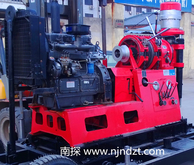 GXY-2B型鉆機(jī)與一般類(lèi)型油壓鉆機(jī)比較具有下列特點(diǎn): 1.鉆機(jī)具有較高的轉(zhuǎn)速和較合理的轉(zhuǎn)速范圍,轉(zhuǎn)速級(jí)數(shù)較多、低速扭矩大,適合小口徑金剛石巖心鉆機(jī),也能滿足大口徑硬質(zhì)合金巖心鉆進(jìn)和各種工程鉆孔的要求。2.鉆機(jī)重量較輕,可拆性較好。鉆機(jī)可分解成九個(gè)整體部件,最大部件重量?jī)H200千克。便于搬遷,宜于山區(qū)工作。3.結(jié)構(gòu)簡(jiǎn)單布局較合理,所有部件均表露在外,不相互重疊,便于維護(hù)、保養(yǎng)和修理。 4.鉆機(jī)具有兩個(gè)反轉(zhuǎn)速度,處理事故時(shí)勞動(dòng)強(qiáng)度不大,且安全。5.鉆機(jī)移車(chē)平穩(wěn),固定牢固,鉆機(jī)機(jī)架堅(jiān)固、重心低,高速鉆進(jìn)時(shí)穩(wěn)定性好。6.配有足夠儀表,利于掌握孔內(nèi)情況,操縱手柄比較靈活,布局較合理,操縱靈活可靠。7.鉆機(jī)與泥漿泵采用單機(jī)分別傳動(dòng),機(jī)場(chǎng)布置比較靈活,可減少機(jī)場(chǎng)面積。