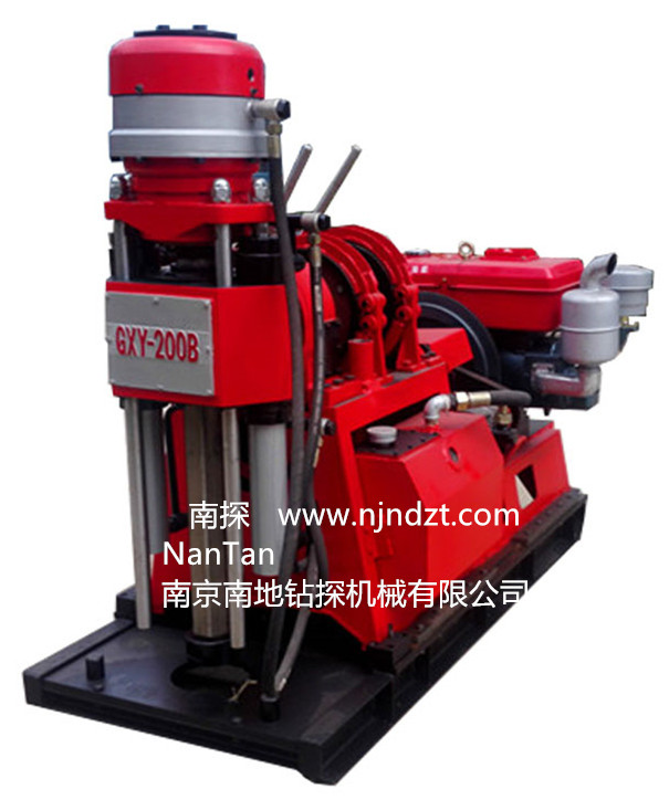 GXY-200B型鉆機是一種機械傳動液壓給進的立軸回轉(zhuǎn)式、輕便多用途工程勘察施工鉆機,它適用于工業(yè)和民用建筑以及公路、鐵路、橋基、壩址、水利、水井、探礦等工程地質(zhì)勘察工作,淺層石油和天然氣開采,礦山坑道通風、排水,以及小口徑的基樁孔施工等,固體礦床的普查勘探,爆破孔用各種混凝土結(jié)構(gòu)的檢查孔等。根據(jù)地層的不同,可選用金剛石、硬質(zhì)合金、螺旋等鉆頭進行鉆孔。具有結(jié)構(gòu)緊湊,重量輕,體積小,可拆性好等優(yōu)點,是適應(yīng)新型市場需求不可多得的理想設(shè)備之一。