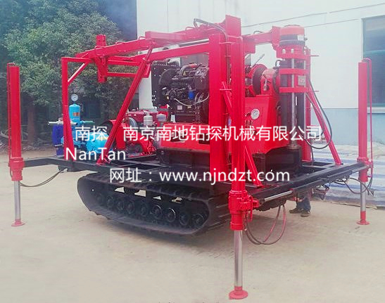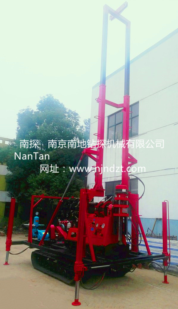 鉆機機組由履帶底盤、柴油機、升高型液壓支腿、鉆機、液壓起落鉆塔組成,共同組裝在一個機架上。鉆機可以選擇柴油機或電動機、履帶底盤及液壓支腿由獨立柴油機帶動、互不干涉。