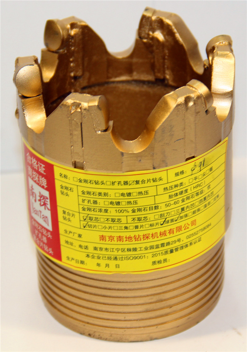 巖心管(單管)取芯復(fù)合片鉆頭按照復(fù)合片的種類又可以分:普通型復(fù)合片鉆頭、加強型復(fù)合片鉆頭、球面復(fù)合片鉆頭、超強型復(fù)合片鉆頭、盔齒型復(fù)合片鉆頭、切片復(fù)合片鉆頭、小牙復(fù)合片鉆頭、小牙螺紋復(fù)合片鉆頭、菠蘿復(fù)合片鉆頭、外肋骨復(fù)合片鉆頭、無內(nèi)徑跟管復(fù)合片鉆頭等許多種,以便于滿足不同地層、砂礫石、巖石的取芯需求。該種鉆頭穩(wěn)定性好,具有使用壽命長、鉆進效率高、低壓中速鉆進、保徑效果好、使用范圍廣和具有優(yōu)越的性價比等特點,可廣泛應(yīng)用于地質(zhì)勘探、煤田開采、水利水電施工(水井開發(fā))、地?zé)峥?、公路、鐵路、建筑施工建設(shè)的巖石鉆進及巖石抽心取樣驗樁。