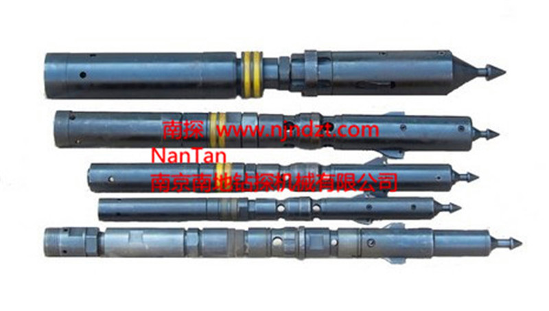取芯鉆桿鉆具是一種不提鉆而從鉆桿內(nèi)撈取巖芯的鉆井工具。它具有鉆進(jìn)效率高,巖心采取率高,鉆頭壽命長,勞動強度小等優(yōu)點。隨著鉆孔深度的加深,其優(yōu)勢更為明顯。整套鉆具包括鉆具總成、鉆桿、加厚鉆桿、提引器、打撈器、夾持器、電動或柴油機(jī)驅(qū)動繩索絞車和金剛石自由鉗等部件。
