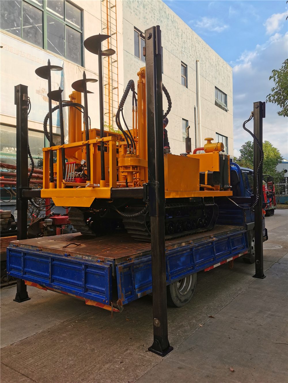 NTLPSY-L8-20T-SG型履帶靜力觸探車由自行走履帶底盤、1臺四缸柴油機、20T液壓靜探機、自動伸縮式升高型上下車液壓支撐腿系統(tǒng)、2組液壓下錨機、控制器、平臺及駕駛機構(gòu)等組成,共同組裝在一個機架上。