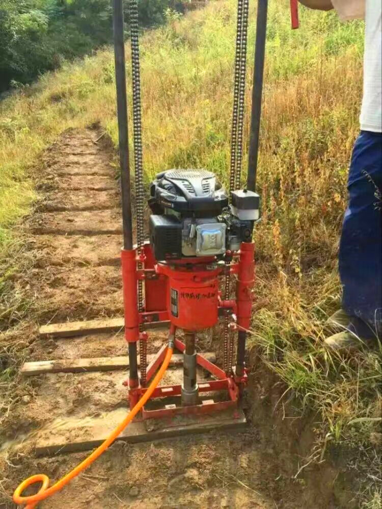 1、取樣鉆機:含汽油發(fā)動機、鉆進裝置、鏈條式支架、轉(zhuǎn)向盤、木架底座。